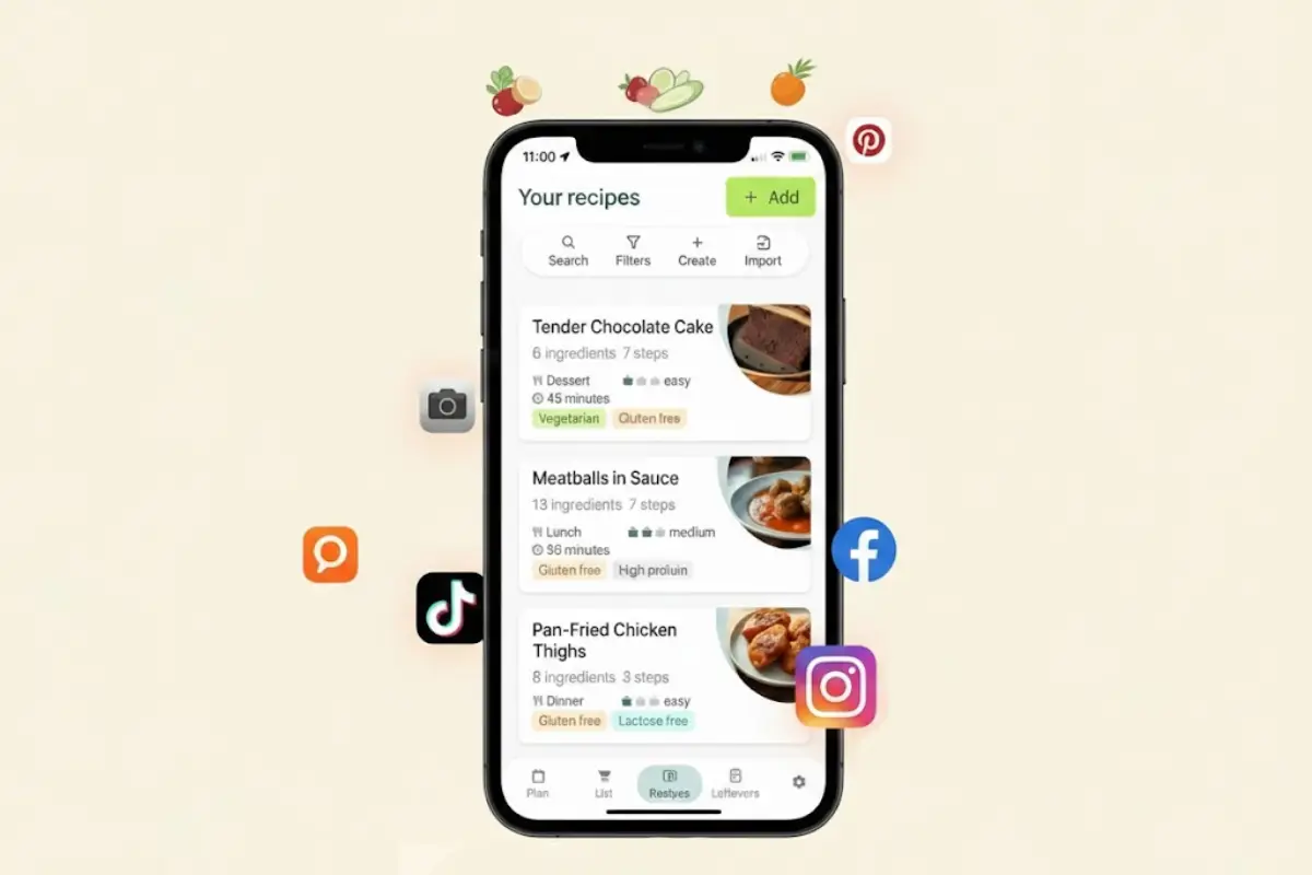Found an irresistible recipe on Instagram, TikTok, or YouTube? Import it into MenuMagic with a simple link. Our system automatically extracts ingredients and instructions from reels, videos, and recipe sites, translating everything into your language. Add your finds to the meal plan and shopping list without any manual copying. Works with leading recipe sites and popular social networks.